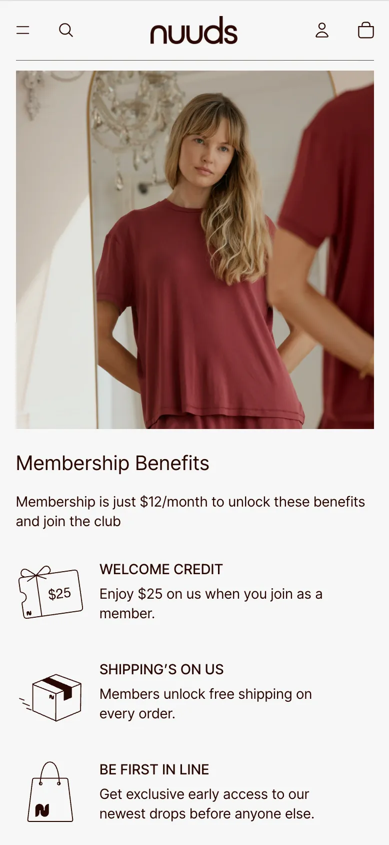 Planning started in August 2025. Hannah Csontos, then customer experience lead at nuuds, ran working sessions with the Rivo team through the fall, biweekly at first and then weekly as launch approached. The brief was short, membership that earns its price tag.