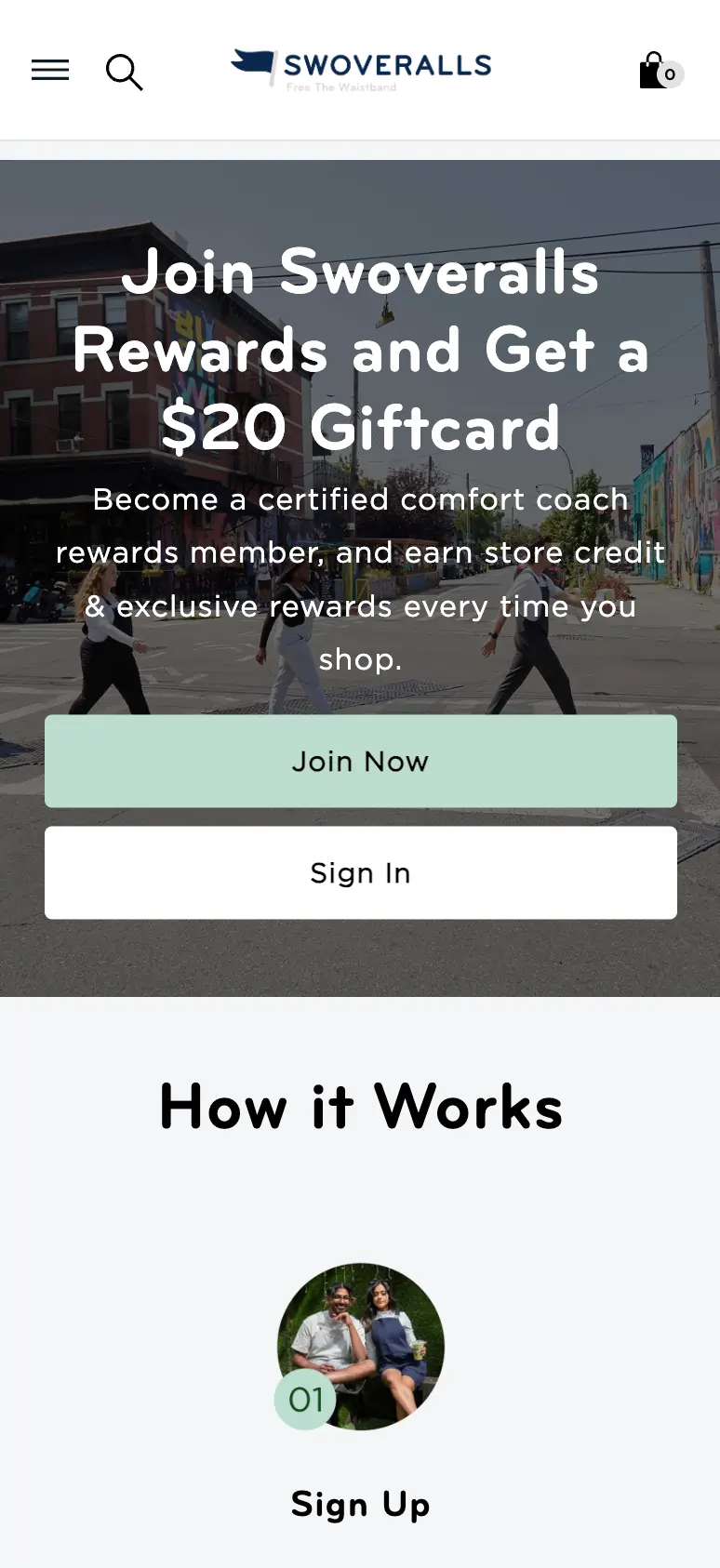 Swoveralls made a deliberate decision to create a strong first impression. Every new member receives $20 in store credit immediately after signing up. On a brand with an average order value around $118, that's a meaningful incentive to engage right away.